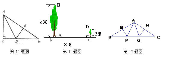 10.如图,有两棵树,一棵高8米,另一棵高2米,两树相距8米,一只小鸟从一棵树的树梢飞到另一棵树的树梢,则它至少要飞行_______米.