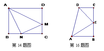 14.如图,沿AM折叠,使D点落在BC上,如果AD=7cm,DM=5cm,∠DAM=30°,则AN=_________cm,∠NAM=_________.