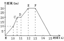27、(10分)如图所示,折线表示小丽骑车离家的距离与时间的关系,小丽上午九时离开家,下午十五时到家,根据折线图所提供的信息,思考并回答下列问题: