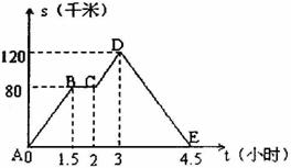 10.如图中的图象(折线ABCDE)描述了一汽车在某一直线上的行驶过程中,汽车离出发地的距离s(千米)和行驶时间t(小时)之间的函数关系,根据图中提供的信息,给出下列说法:①汽车共行驶了120千米;②汽车在行驶途中停留了0.5小时;③汽车在整个行驶过程中的平均速度为 千米/时;④汽车自出发后3小时至4.5小时之间行驶的速度在逐渐减少.其中正确的说法共有( )