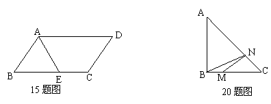 20.已知:如图Rt△ABC中,∠B=90°,AB=BC=8,M在BC上,且BM=2,N是AC上一动点,则BN+MN的最小值为___________.