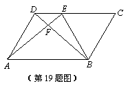 19. 如图,□ABCD中,E为CD上一点,DE∶CE = 2∶3,连结AE、BE、BD,且AE、BD交于点F,则S△DEF∶S△EBF∶S△ABF = _________________.