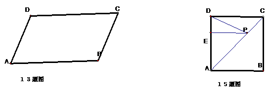 15、如图,正方形ABCD的边长为8,DE=2,在对角线AC上有一点P,则PD+PE的最小值为 。