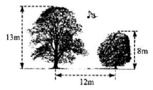 (6分) 如图,有一只小鸟从小树顶飞到大树顶上,请问它飞行的最短路程是多少米?(先画出示意图,然后再求解)