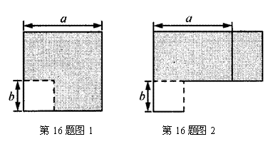16.如图1在边长为a的正方形中,挖掉一个边长为b的小正方形(a>b),把余下的部分拼成一个矩形,如图2,通过计算两个图形(阴影部分)的面积,可以验证一个等式,则这个等式是___ __.