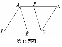 16. AE=CF;证明∵四边形ABCD为平行四边形,∴AF∥CE,又∵AE∥CF