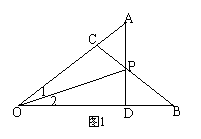 如图1所示,AD⊥OB,BC⊥OA,垂足分别为D、C,AD与BC相交于点P,若PA=PB,则∠1与∠2的大小是()