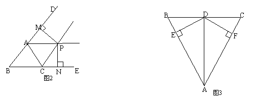 3.如图2所示,已知PA、PC分别是△ABC的外角∠DAC、∠ECA的平分线,PM⊥BD,PN⊥BE,垂足分别为M、N,那么PM与PN的关系是()