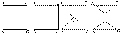 第28题. 国家电力总工司为了改善农村用电电费过高的现状,目前,正在全国各地农村进行电网改造,莲花村六组有四个村庄A、B、C、D正好位于一个正方形的四个顶点,现计划在四个村庄联合架设一条线路,他们设计了四种架设方案,如图中的实线部分,请你帮助计算一下,哪种架设方案最省电线.(以下数据可供参考:
