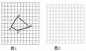 (2)在图(2)方格纸中画一个格点三角形EFG,使△EFG的面积等于四边形ABCD的面积且为轴对称图形.