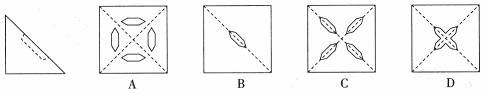 8.如图所示,一正方形的纸片经三次折叠后,用剪子剪掉虚线部分,则展开后的图形是( )