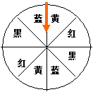 第18题. 如图是一个可自由转动的转盘,被均匀分成了相等的8个扇形,分别涂上黑红黄蓝色,求:转出红色的概率.