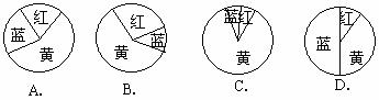 第29题. 下列是小马设计的四种转盘,三种颜色所占扇形面积的比例不同,当转动转盘,停止后,指针对向蓝色的可能性最大的是( )