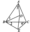 5.如图,D是△ABC内的一点,E是△ABC外的一点,且∠1=∠2,∠3=∠4,图中有与∠ACB相等的角吗?如果有,请找出来,并说明理由.