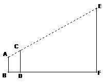 在一次测量旗杆高度的活动中,某小组使用的方案如下:AB表示某同学从眼睛到脚底的距离,CD表示一根标杆,EF表示旗杆,AB、CD、EF都垂直于地面。若AB=1.6m,CD=2m,人与标杆之间的距离BD=1m,标杆与旗杆之间的距离DF=30m,求旗杆EF的高度。