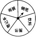 15. 某单位的联欢会上,设有一个摇奖节目,奖品为雨披,钢笔,饮料,图书,笔记本,标于一个转盘的相应区域上(转盘被均匀等分为五个区域,如图).转盘可以自由转动,参与者转动转盘,当转盘停止时,指针落在哪一个区域,就获得哪种奖品,则获得钢笔的概率为 .