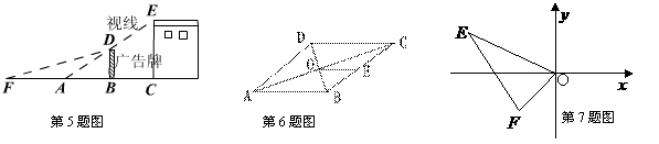 5、如图所示,在房子外的屋檐E处安有一台监视器,房子前有一面落地的广告牌,那么监视器的盲区在 ( )