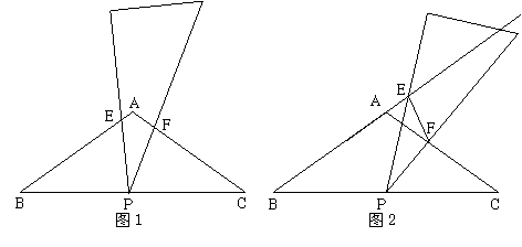 (1)如图1,当三角板的两边分别交AB、AC于点E、F时.说明:△BPE∽△CFP;