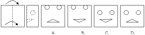 5.如图所示的矩形纸片,先沿虑线按箭头方向向右对折,接着将对折后的纸片沿虑线剪下一个小圆和一个小三角形,然后将纸片打开是下列图中的哪一个( )