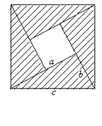 小正方形的面积是(a-b)2, 大正方形的面积是c2,