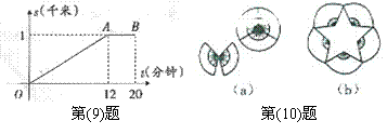 10、如图,是由10把相同的折扇组成的“蝶恋花”(图a)和梅花图案(图b)(图中的折扇无重叠)。则梅花图案中的五角星的五个锐角的度数均为 度。