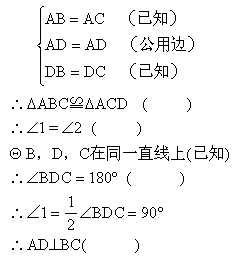 已知:△ABC中 , AB=AC , BD=DC , B、D、C在同一条直线上.