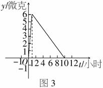 2.(14分 )为了抗击“禽流感”,医药工作者们经过不懈的研究,终于研制了一种新药,在临床试验时发现,如果成人按规定的剂量注射这种抗生素,注射药液后每毫升血液中含药量y(微克)与时间t(小时)之间的关系近似地满足如图3所示的折线.