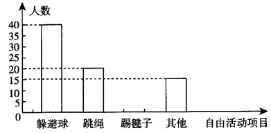 6.某学校为丰富课间自由活动的内容,随机选取本校100名学生进行调查,调查内容是“你最喜欢的自由活动项目是什么”,整理收集到的数据,绘制成直方图,如图所示.