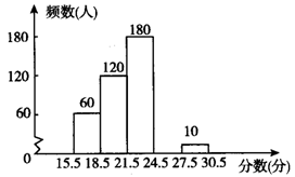 (4)若成绩在24分以上的为“优秀”,请估计今年全市初中毕业生的体育升学考试成绩为“优秀”的人数.