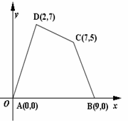 如图所示的直角坐标系中,四边形ABCD各顶点的坐标分别为A(0,0)、B(9,0)、C(7,5)、D(2,7).求四边形ABCD的面积.