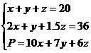 13.设装甲、乙、丙的汽车分别为x,y,z辆才得利润P百元