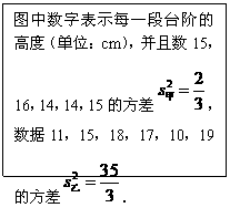 在某旅游景区上山的一条小路上,有一些断断续续的台阶,图2是其中的甲、乙两段台阶路的示意图.请你用所学过的有关统计知识(平均数、中位数、方差和极差)回答下列问题: