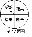 17、某班的联欢会上,设有一个摇奖节目,奖品为钢笔、图书和糖果,