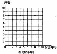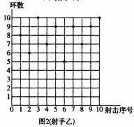 16.(10分) (02广西)甲乙两名射手在相同条件下打靶,射中的环数分别如图1、图2所示: