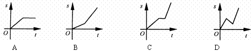 小明骑自行车上学,开始以正常速度匀速行驶,但行至中途自行车出了故障,只好停下来修车。车修好后,因怕耽误上课,他比修车前加快了骑车速度匀速行驶。下面是行驶路程s(米)关于时间t(分)的函数图像,那么符合这个同学行驶情况的图像大致是 ( )