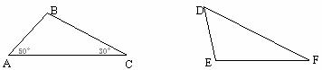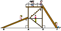 3.如下图,有两个长度相同的滑梯,左边滑梯的高度AC与右边滑梯的水平方向的长度DF相等,两个滑梯的倾斜脚∠ABC和∠DFE的大小有什么关系?
