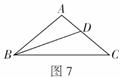 8.如图7,等腰三角形ABC中,AB=AC,BD平分∠ABC,若∠BDC=120°,则∠A等于( )
