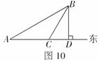 3.(本题10分)已知:如图10,某船上午11时30分在A处观测海岛B在北偏东60°.该船以10海里/时的速度向东航行到C处,再观测海岛B在北偏东30°,且船距离海岛20海里.