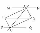 如图,MN∥PQ,同旁内角的平分线AB、CB和AD、CD分别交于点B、D
