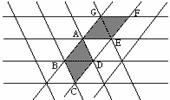 同学们曾经玩过“万花筒”,它是由三个等宽等长的玻璃片围成的。如下图是“万花筒”的一个图案,图中所有的小三角形均是全等的等边三角形,其中菱形AEFG可以看成是把菱形ABCD以A为中心按( )