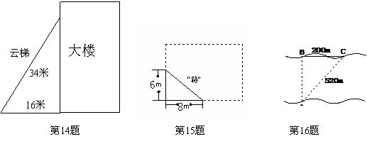 14.如图,消防云梯的长度是34米,在一次执行任务时,它只能停在离大楼16米远的地方,则云梯能达到大楼的高度是 米.