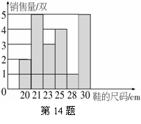 14.如图,描述了一家鞋店在一段时间里销售女鞋的情况:则这组数据的众数为 .