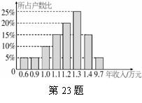 23.(8分)王飞同学进行社会调查,随机抽查了某个地区20个家庭的年收入情况,并绘制了统计图,如图2所示,请你根据统计图给出的信息回答: