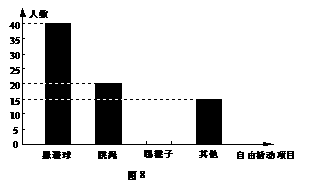 ⑵求喜欢“踢毽子”的学生人数,并中图8中将“踢毽子”部分的图形补充完整;