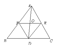 (本题6分)如图,在△ABC中,D、E、F分别是BC、AC、AB的中点,AD与EF交于O,求证:OE=OF,OA=OD.