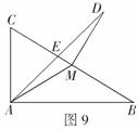 3.(本题8分)如图9,在Rt△ABC中,∠BAC=90°,M为BC中点,MD⊥BC交∠BAC的平分线于点D,求证:AM=DM.