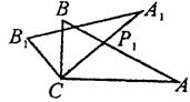 (1)将图1中△A1B1C绕C点顺时针旋转45°得图2,点P1是A1C与AB的交点,求证: