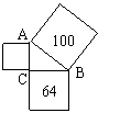 8、如图4,Rt△ABC中,∠ACB=90°,以AB、BC为边的两个正方形的面积分别为100、64,则以AC为边的正方形的面积是