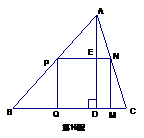 16、如图所示△ABC中,边BC=12cm,高AD=6cm,边长为x的正方形PQMN的一边在BC上,其余两个顶点分别在AB、AC上,则边长x为 ( )
