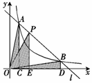 )交于A、B两点,P是线段AB上的点(不与A、B重合),过点A、B、P分别向x轴作垂线,垂足分别为C、D、E,连接OA、OB、OP,设△AOC的面积为